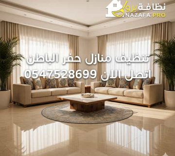 إذا كنت من سكان حفر الباطن وتبحث عن شركة تنظيف في حفر الباطن موثوقة ومحترفة، فأنت في المكان الصحيح! نظافة برو تُعتبر من شركات النظافة المعتمدة في حفر الباطن التي تقدم خدمات تنظيف شاملة بحفر الباطن تشمل تنظيف الكنب، المجالس، السجاد، الفلل، الشقق، وحتى مكافحة الحشرات بحفر الباطن.